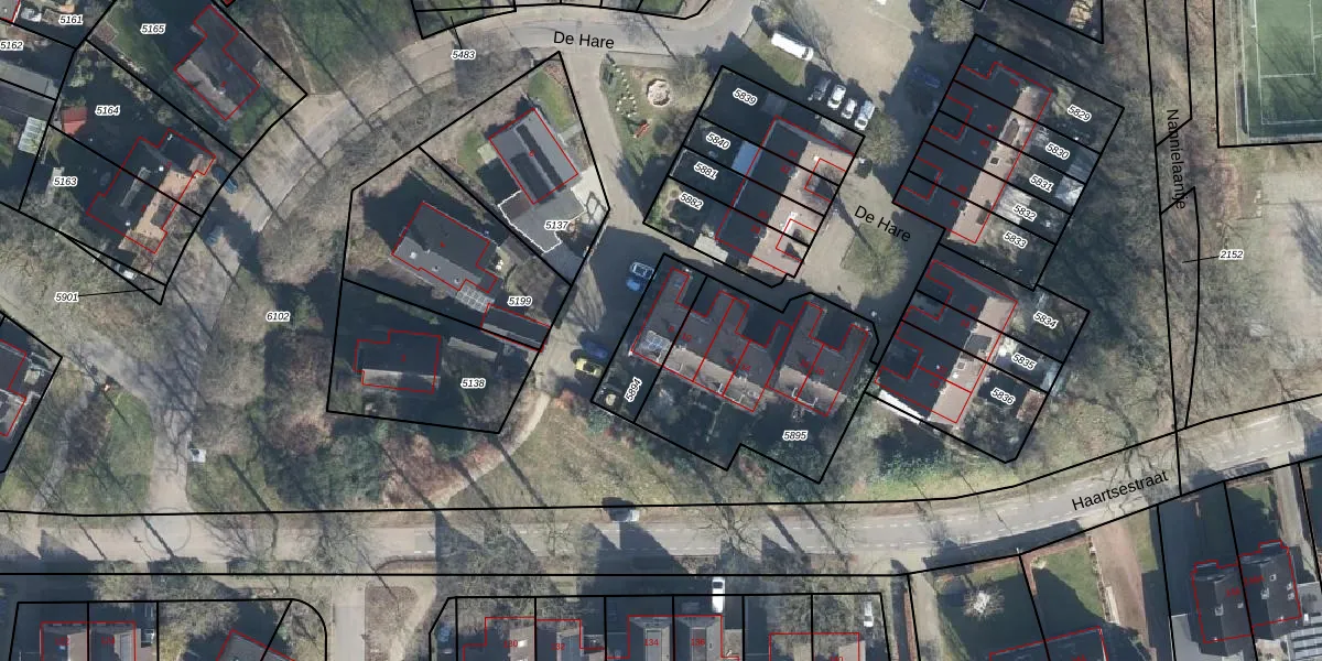 Het perceel waarop De Hare 8 staat heeft een oppervlakte van 180 m². Dit is een middelgroot perceel. De perceeloppervlakte wordt geregistreerd door het Kadaster. Gedetailleerde informatie over de maten van dit perceel kunt u vinden in het rapport Kadastrale kaart met maatvoering van De Hare 8.