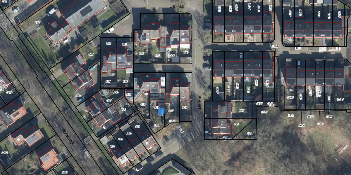 Het perceel waarop De Pas 17 staat heeft een oppervlakte van 220 m². Dit is een middelgroot perceel. De perceeloppervlakte wordt geregistreerd door het Kadaster. Gedetailleerde informatie over de maten van dit perceel kunt u vinden in het rapport Kadastrale kaart met maatvoering van De Pas 17.