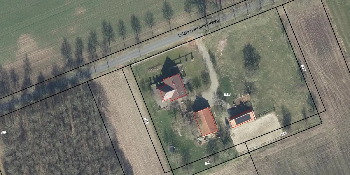 Het perceel waarop Driehonderdmeterweg 10 staat heeft een oppervlakte van 5805 m². Dit is een zeer groot perceel. De perceeloppervlakte wordt geregistreerd door het Kadaster. Gedetailleerde informatie over de maten van dit perceel kunt u vinden in het rapport Kadastrale kaart met maatvoering van Driehonderdmeterweg 10.