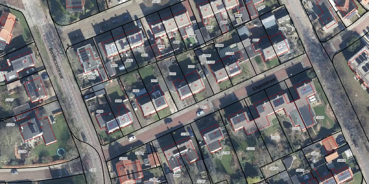 Het perceel waarop Eligiusstraat 21 staat heeft een oppervlakte van 317 m². Dit is een groot perceel. De perceeloppervlakte wordt geregistreerd door het Kadaster. Gedetailleerde informatie over de maten van dit perceel kunt u vinden in het rapport Kadastrale kaart met maatvoering van Eligiusstraat 21.