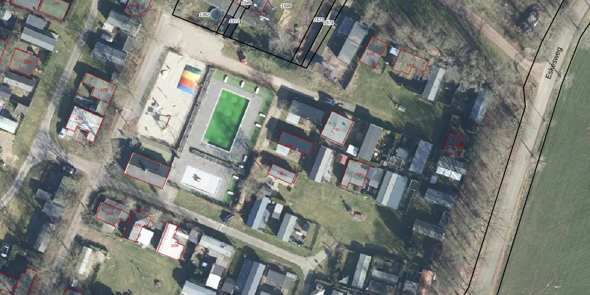 Het perceel waarop Eskesweg 1-33 staat heeft een oppervlakte van 6,2 ha. Dit is een zeer groot perceel. De perceeloppervlakte wordt geregistreerd door het Kadaster. Gedetailleerde informatie over de maten van dit perceel kunt u vinden in het rapport Kadastrale kaart met maatvoering van Eskesweg 1-33.