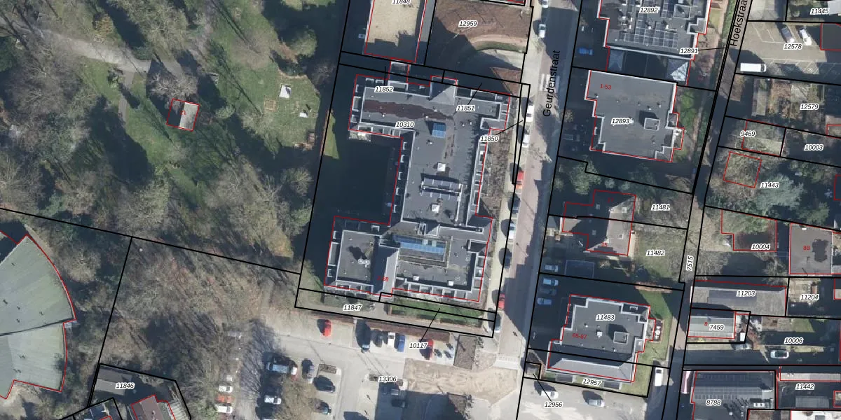 Het perceel waarop Geurdenstraat 32 staat heeft een oppervlakte van 2525 m². Dit is een zeer groot perceel. De perceeloppervlakte wordt geregistreerd door het Kadaster. Gedetailleerde informatie over de maten van dit perceel kunt u vinden in het rapport Kadastrale kaart met maatvoering van Geurdenstraat 32.