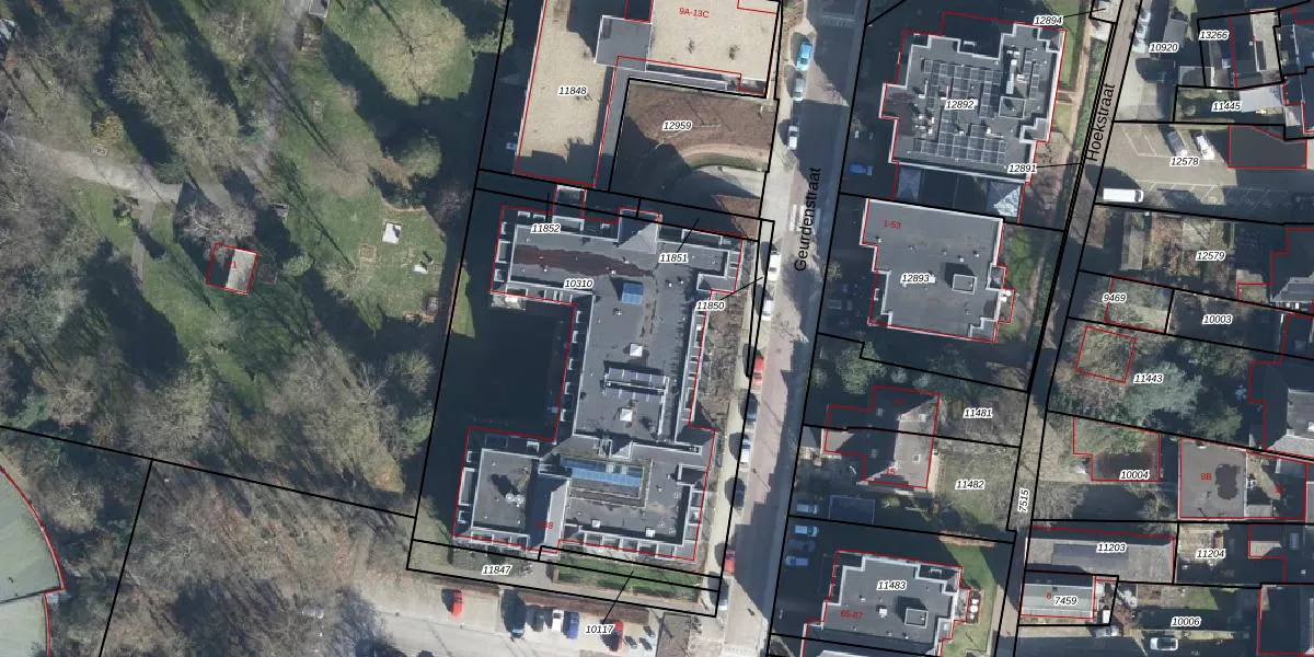 Het perceel waarop Geurdenstraat 82 staat heeft een oppervlakte van 2525 m². Dit is een zeer groot perceel. De perceeloppervlakte wordt geregistreerd door het Kadaster. Gedetailleerde informatie over de maten van dit perceel kunt u vinden in het rapport Kadastrale kaart met maatvoering van Geurdenstraat 82.