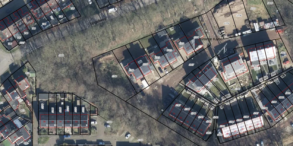 Het perceel waarop Groene Kamer 11 staat heeft een oppervlakte van 303 m². Dit is een groot perceel. De perceeloppervlakte wordt geregistreerd door het Kadaster. Gedetailleerde informatie over de maten van dit perceel kunt u vinden in het rapport Kadastrale kaart met maatvoering van Groene Kamer 11.