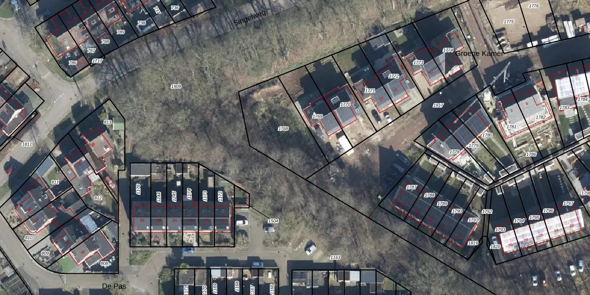 Het perceel waarop Groene Kamer 7 staat heeft een oppervlakte van 575 m². Dit is een groot perceel. De perceeloppervlakte wordt geregistreerd door het Kadaster. Gedetailleerde informatie over de maten van dit perceel kunt u vinden in het rapport Kadastrale kaart met maatvoering van Groene Kamer 7.