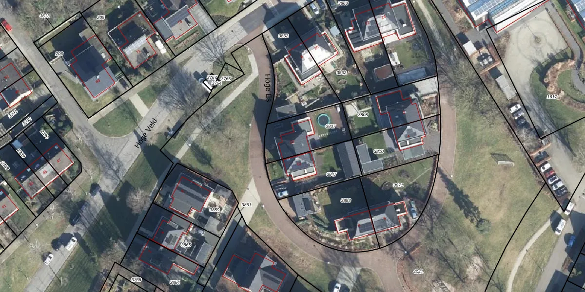 Het perceel waarop Hoge Es 12 staat heeft een oppervlakte van 377 m². Dit is een groot perceel. De perceeloppervlakte wordt geregistreerd door het Kadaster. Gedetailleerde informatie over de maten van dit perceel kunt u vinden in het rapport Kadastrale kaart met maatvoering van Hoge Es 12.