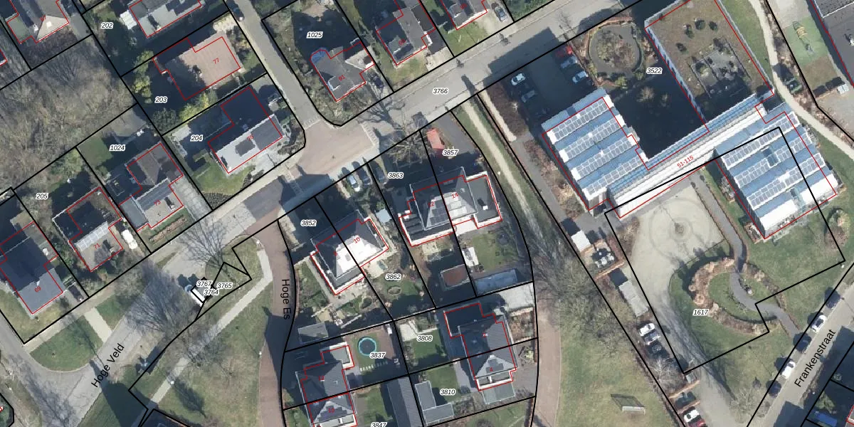 Het perceel waarop Hoge Veld 12 staat heeft een oppervlakte van 475 m². Dit is een groot perceel. De perceeloppervlakte wordt geregistreerd door het Kadaster. Gedetailleerde informatie over de maten van dit perceel kunt u vinden in het rapport Kadastrale kaart met maatvoering van Hoge Veld 12.