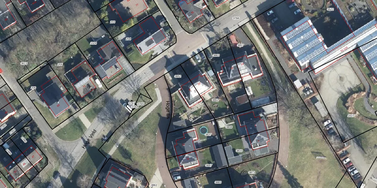 Het perceel waarop Hoge Veld 8 staat heeft een oppervlakte van 510 m². Dit is een groot perceel. De perceeloppervlakte wordt geregistreerd door het Kadaster. Gedetailleerde informatie over de maten van dit perceel kunt u vinden in het rapport Kadastrale kaart met maatvoering van Hoge Veld 8.