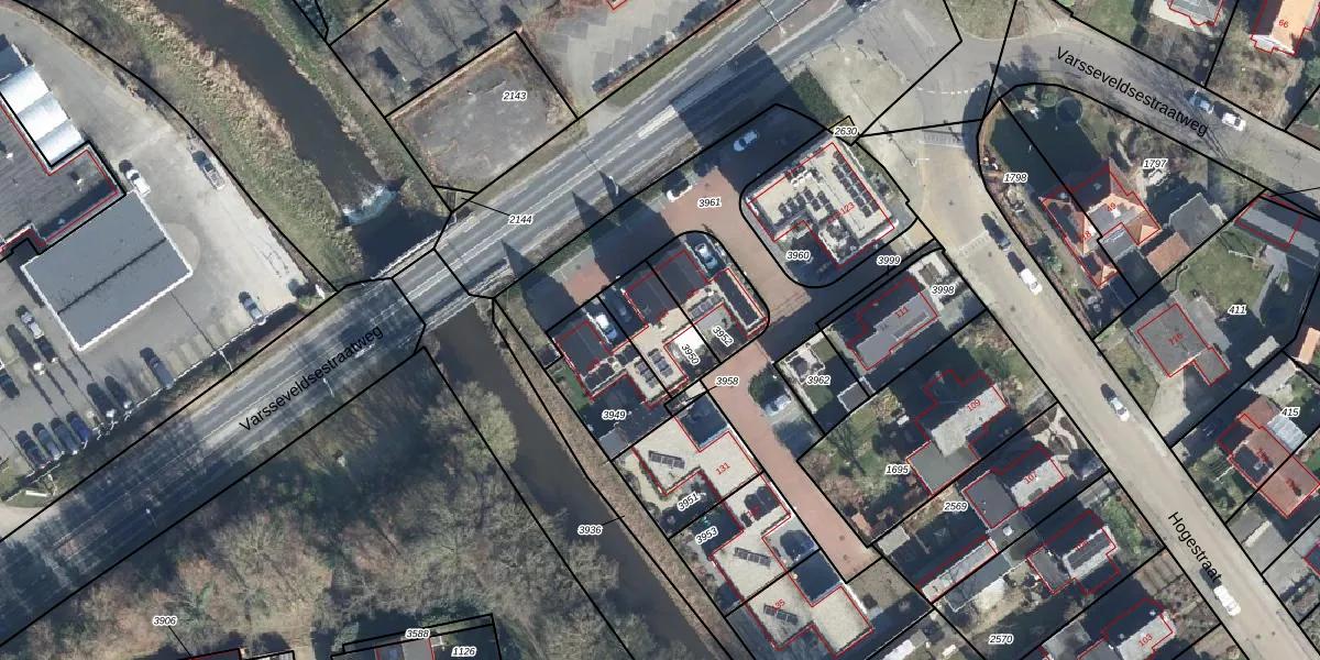 Gebruik de zoekbalk of klik op een perceel voor informatie over de adressen binnen dit perceel.
