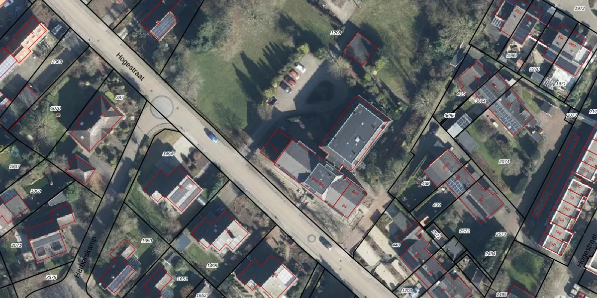 Het perceel waarop Hogestraat 84-N staat heeft een oppervlakte van 7625 m². Dit is een zeer groot perceel. De perceeloppervlakte wordt geregistreerd door het Kadaster. Gedetailleerde informatie over de maten van dit perceel kunt u vinden in het rapport Kadastrale kaart met maatvoering van Hogestraat 84-N.