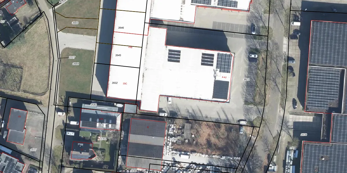 Het perceel waarop Industriestraat 4-F staat heeft een oppervlakte van 3845 m². Dit is een zeer groot perceel. De perceeloppervlakte wordt geregistreerd door het Kadaster. Gedetailleerde informatie over de maten van dit perceel kunt u vinden in het rapport Kadastrale kaart met maatvoering van Industriestraat 4-F.