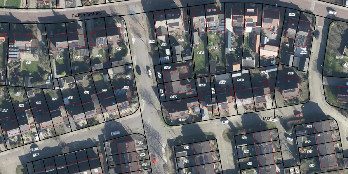 Het perceel waarop Jupiter 38 staat heeft een oppervlakte van 195 m². Dit is een middelgroot perceel. De perceeloppervlakte wordt geregistreerd door het Kadaster. Gedetailleerde informatie over de maten van dit perceel kunt u vinden in het rapport Kadastrale kaart met maatvoering van Jupiter 38.