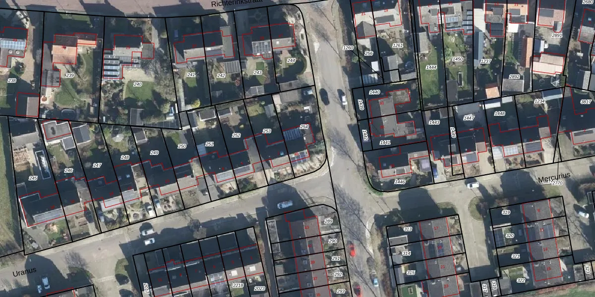 Gebruik de zoekbalk of klik op een perceel voor informatie over de adressen binnen dit perceel.