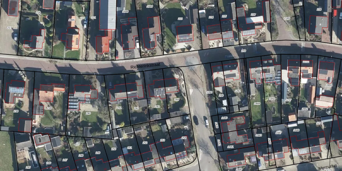 Het perceel waarop Jupiter 47 staat heeft een oppervlakte van 345 m². Dit is een groot perceel. De perceeloppervlakte wordt geregistreerd door het Kadaster. Gedetailleerde informatie over de maten van dit perceel kunt u vinden in het rapport Kadastrale kaart met maatvoering van Jupiter 47.