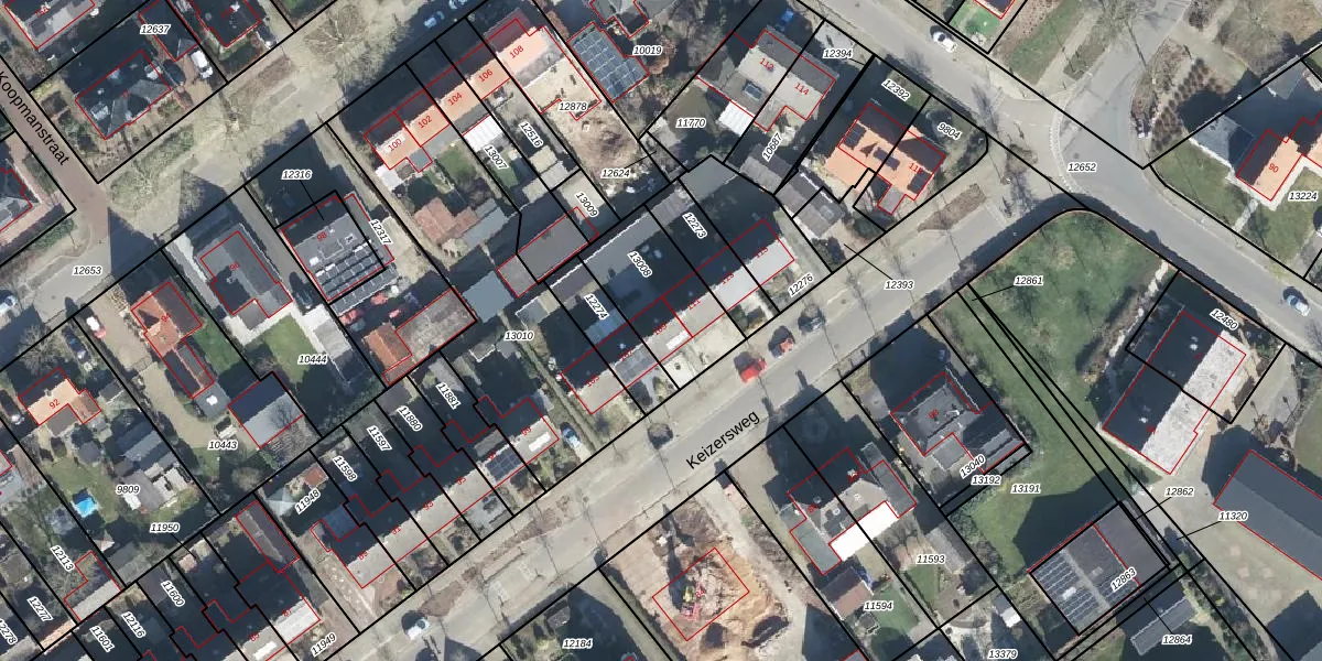 Het perceel waarop Keizersweg 109 staat heeft een oppervlakte van 345 m². Dit is een groot perceel. De perceeloppervlakte wordt geregistreerd door het Kadaster. Gedetailleerde informatie over de maten van dit perceel kunt u vinden in het rapport Kadastrale kaart met maatvoering van Keizersweg 109.