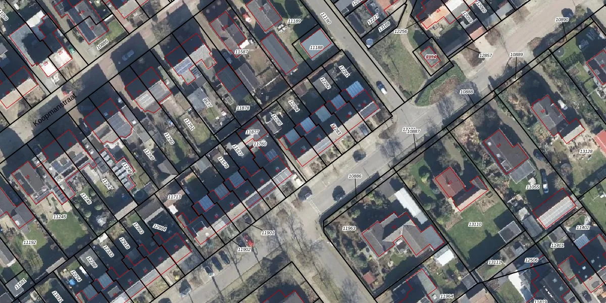 Gebruik de zoekbalk of klik op een perceel voor informatie over de adressen binnen dit perceel.