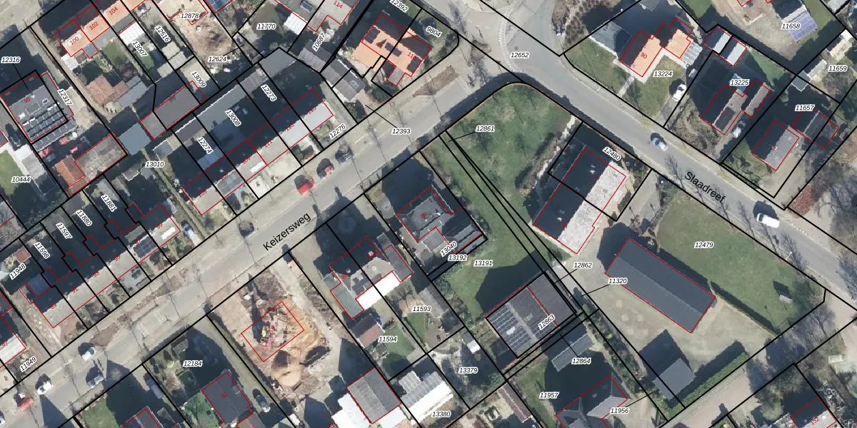 Gebruik de zoekbalk of klik op een perceel voor informatie over de adressen binnen dit perceel.