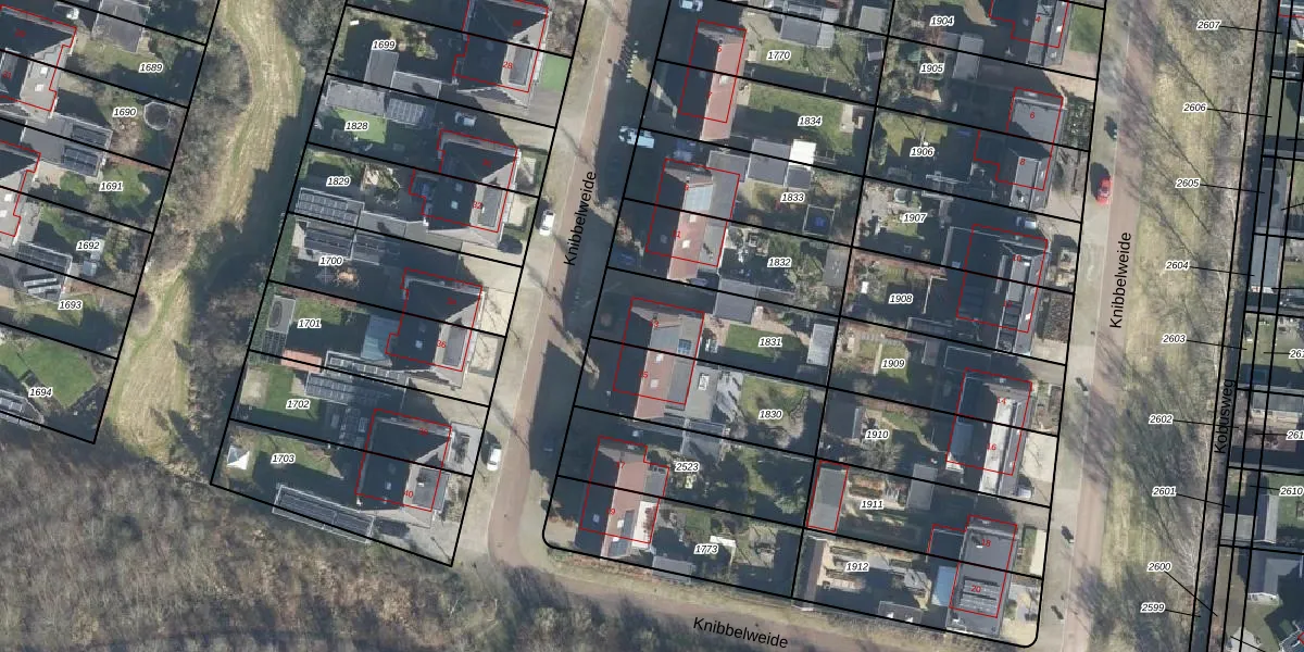 Het perceel waarop Knibbelweide 13 staat heeft een oppervlakte van 403 m². Dit is een groot perceel. De perceeloppervlakte wordt geregistreerd door het Kadaster. Gedetailleerde informatie over de maten van dit perceel kunt u vinden in het rapport Kadastrale kaart met maatvoering van Knibbelweide 13.