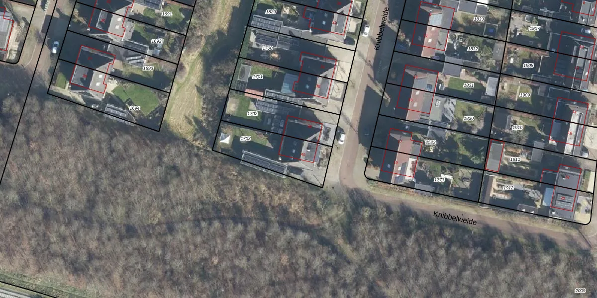 Het perceel waarop Knibbelweide 40 staat heeft een oppervlakte van 475 m². Dit is een groot perceel. De perceeloppervlakte wordt geregistreerd door het Kadaster. Gedetailleerde informatie over de maten van dit perceel kunt u vinden in het rapport Kadastrale kaart met maatvoering van Knibbelweide 40.