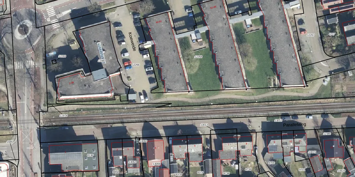 Het perceel waarop Koeweide 40 staat heeft een oppervlakte van 4064 m². Dit is een zeer groot perceel. De perceeloppervlakte wordt geregistreerd door het Kadaster. Gedetailleerde informatie over de maten van dit perceel kunt u vinden in het rapport Kadastrale kaart met maatvoering van Koeweide 40.