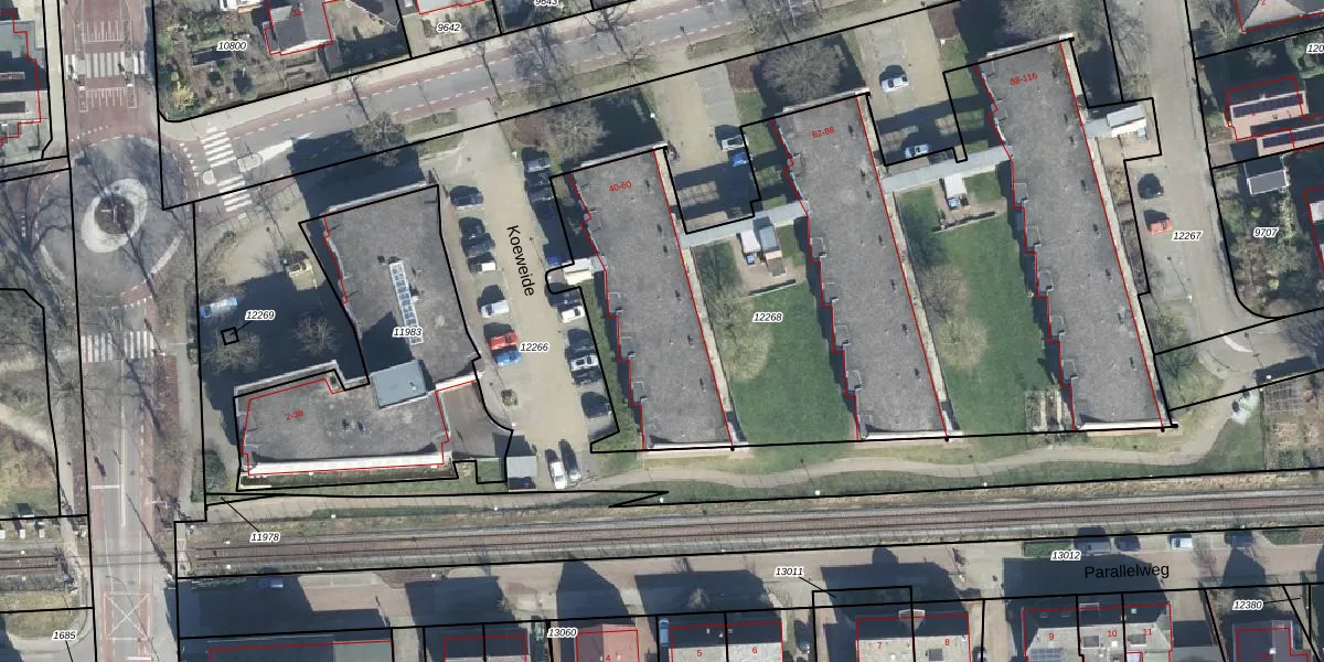 Het perceel waarop Koeweide 48 staat heeft een oppervlakte van 4064 m². Dit is een zeer groot perceel. De perceeloppervlakte wordt geregistreerd door het Kadaster. Gedetailleerde informatie over de maten van dit perceel kunt u vinden in het rapport Kadastrale kaart met maatvoering van Koeweide 48.