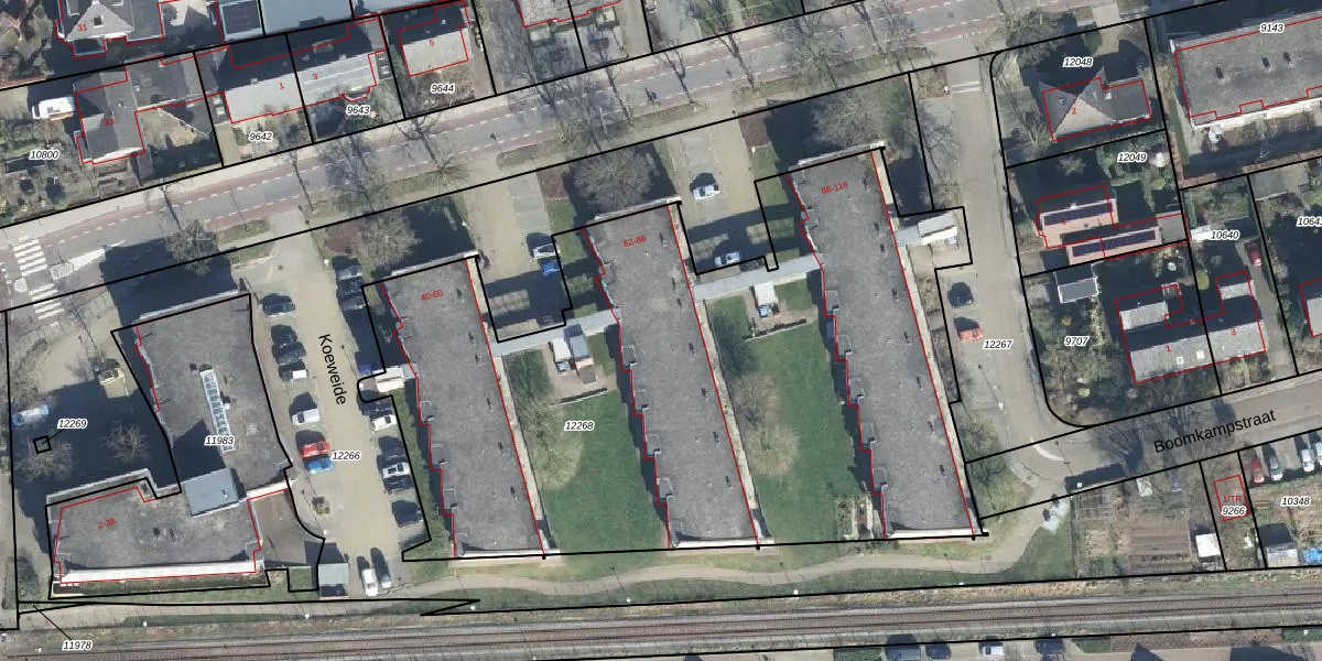 Het perceel waarop Koeweide 78 staat heeft een oppervlakte van 4064 m². Dit is een zeer groot perceel. De perceeloppervlakte wordt geregistreerd door het Kadaster. Gedetailleerde informatie over de maten van dit perceel kunt u vinden in het rapport Kadastrale kaart met maatvoering van Koeweide 78.