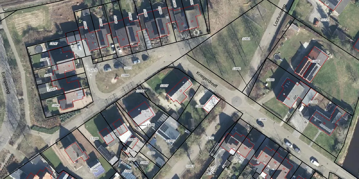 Het perceel waarop Kriegerdreef 12 staat heeft een oppervlakte van 539 m². Dit is een groot perceel. De perceeloppervlakte wordt geregistreerd door het Kadaster. Gedetailleerde informatie over de maten van dit perceel kunt u vinden in het rapport Kadastrale kaart met maatvoering van Kriegerdreef 12.