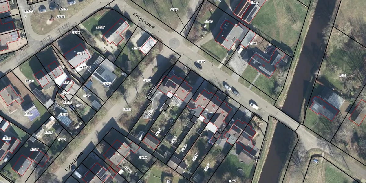 Kriegerdreef 16 is gelegen op kadastraal perceel ATN02I11674. Deze kadastrale aanduiding is uniek en wordt gebruikt door het Kadaster om eigendomsrechten en andere zakelijke rechten vast te leggen. Het perceel maakt onderdeel uit van de kadastrale gemeente Aalten.