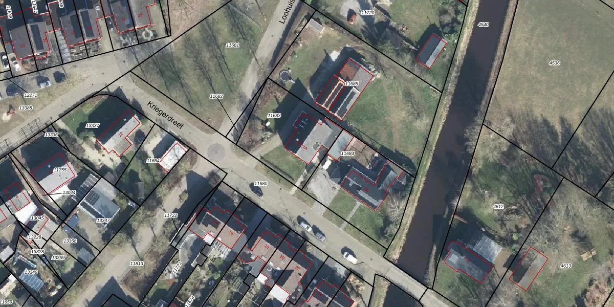Het perceel waarop Kriegerdreef 27-A staat heeft een oppervlakte van 685 m². Dit is een groot perceel. De perceeloppervlakte wordt geregistreerd door het Kadaster. Gedetailleerde informatie over de maten van dit perceel kunt u vinden in het rapport Kadastrale kaart met maatvoering van Kriegerdreef 27-A.