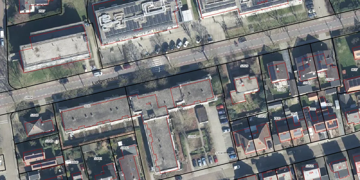 Het perceel waarop Ludgerstraat 10 staat heeft een oppervlakte van 2857 m². Dit is een zeer groot perceel. De perceeloppervlakte wordt geregistreerd door het Kadaster. Gedetailleerde informatie over de maten van dit perceel kunt u vinden in het rapport Kadastrale kaart met maatvoering van Ludgerstraat 10.