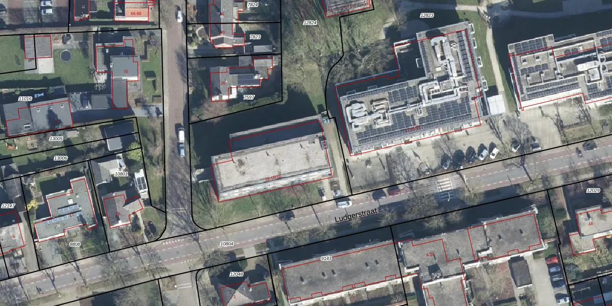 Het perceel waarop Ludgerstraat 15-12 staat heeft een oppervlakte van 3396 m². Dit is een zeer groot perceel. De perceeloppervlakte wordt geregistreerd door het Kadaster. Gedetailleerde informatie over de maten van dit perceel kunt u vinden in het rapport Kadastrale kaart met maatvoering van Ludgerstraat 15-12.