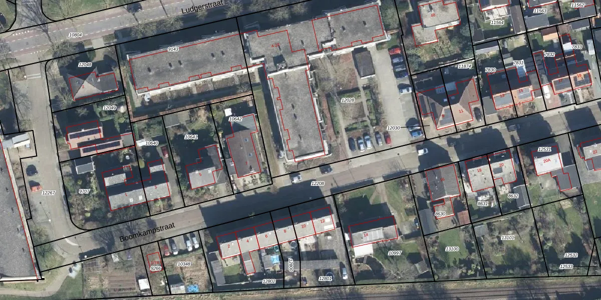 Het perceel waarop Ludgerstraat 18-C staat heeft een oppervlakte van 2857 m². Dit is een zeer groot perceel. De perceeloppervlakte wordt geregistreerd door het Kadaster. Gedetailleerde informatie over de maten van dit perceel kunt u vinden in het rapport Kadastrale kaart met maatvoering van Ludgerstraat 18-C.