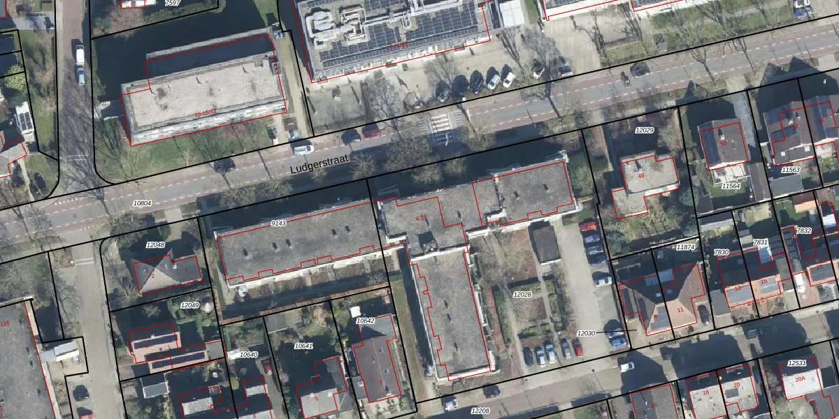 Het perceel waarop Ludgerstraat 6 staat heeft een oppervlakte van 2857 m². Dit is een zeer groot perceel. De perceeloppervlakte wordt geregistreerd door het Kadaster. Gedetailleerde informatie over de maten van dit perceel kunt u vinden in het rapport Kadastrale kaart met maatvoering van Ludgerstraat 6.