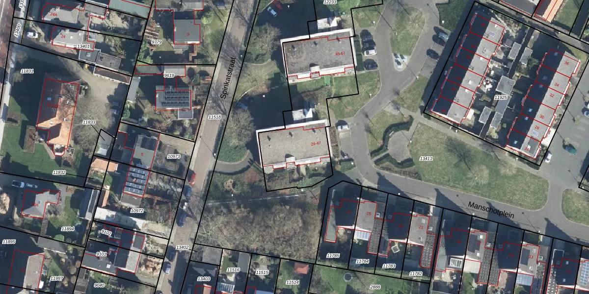 Het perceel waarop Manschotplein 39 staat heeft een oppervlakte van 1818 m². Dit is een zeer groot perceel. De perceeloppervlakte wordt geregistreerd door het Kadaster. Gedetailleerde informatie over de maten van dit perceel kunt u vinden in het rapport Kadastrale kaart met maatvoering van Manschotplein 39.