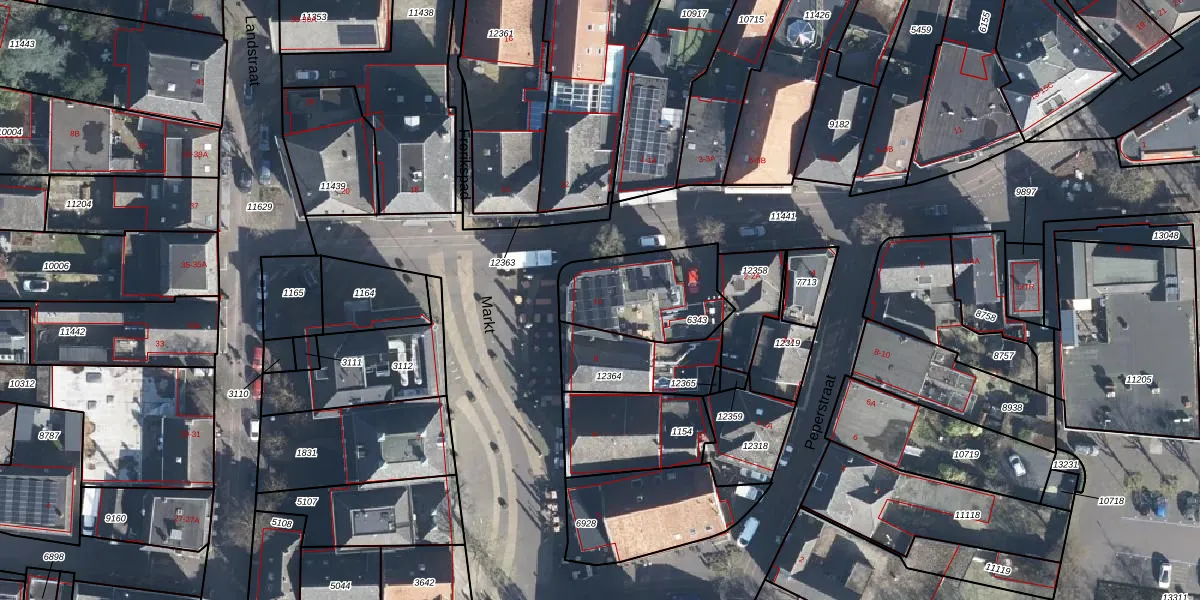 Het perceel waarop Markt 10 staat heeft een oppervlakte van 375 m². Dit is een groot perceel. De perceeloppervlakte wordt geregistreerd door het Kadaster. Gedetailleerde informatie over de maten van dit perceel kunt u vinden in het rapport Kadastrale kaart met maatvoering van Markt 10.