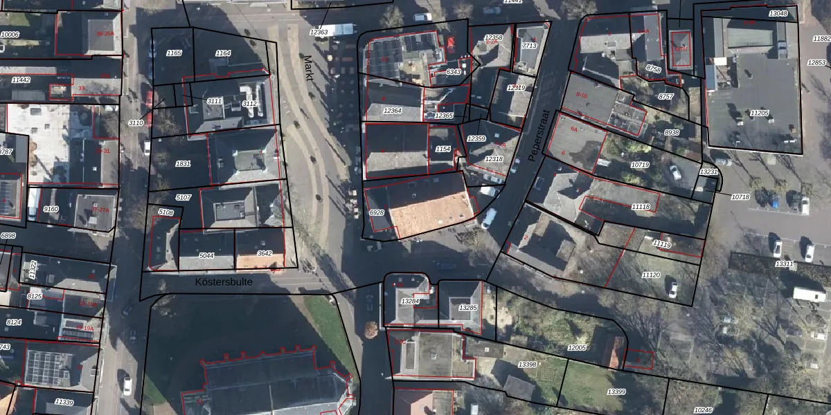 Het perceel waarop Markt 2 staat heeft een oppervlakte van 387 m². Dit is een groot perceel. De perceeloppervlakte wordt geregistreerd door het Kadaster. Gedetailleerde informatie over de maten van dit perceel kunt u vinden in het rapport Kadastrale kaart met maatvoering van Markt 2.