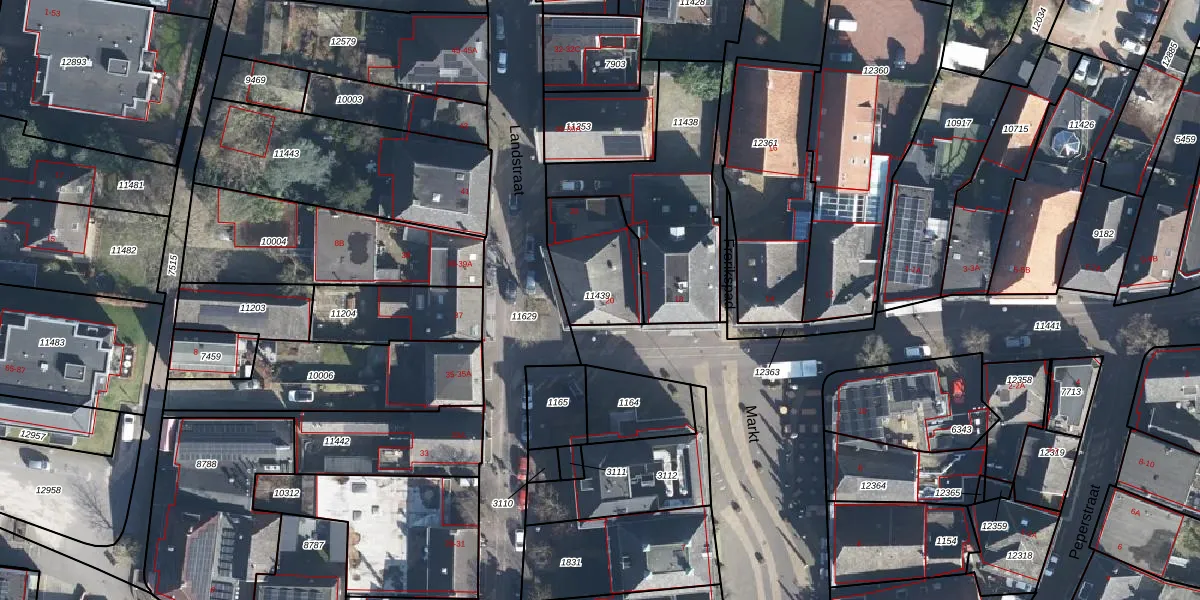 Het perceel waarop Markt 20 staat heeft een oppervlakte van 283 m². Dit is een middelgroot perceel. De perceeloppervlakte wordt geregistreerd door het Kadaster. Gedetailleerde informatie over de maten van dit perceel kunt u vinden in het rapport Kadastrale kaart met maatvoering van Markt 20.