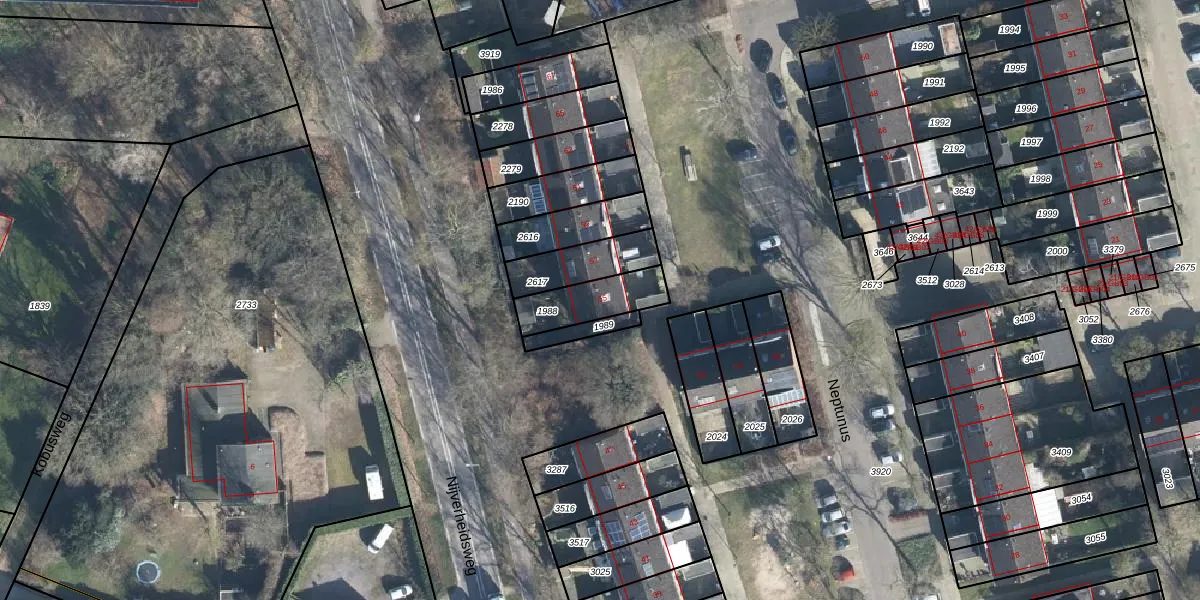 Het perceel waarop Neptunus 55 staat heeft een oppervlakte van 165 m². Dit is een middelgroot perceel. De perceeloppervlakte wordt geregistreerd door het Kadaster. Gedetailleerde informatie over de maten van dit perceel kunt u vinden in het rapport Kadastrale kaart met maatvoering van Neptunus 55.