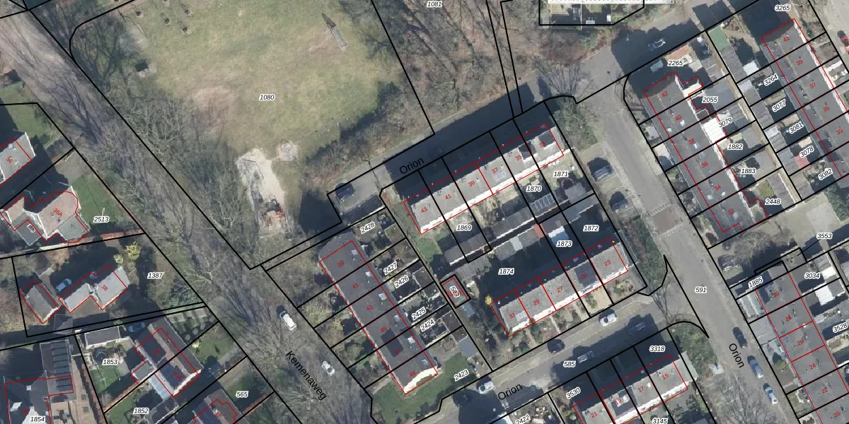 Het perceel waarop Orion 43 staat heeft een oppervlakte van 1220 m². Dit is een zeer groot perceel. De perceeloppervlakte wordt geregistreerd door het Kadaster. Gedetailleerde informatie over de maten van dit perceel kunt u vinden in het rapport Kadastrale kaart met maatvoering van Orion 43.