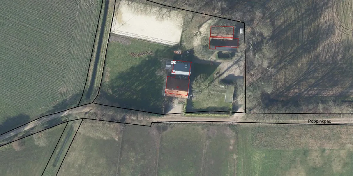 Het perceel waarop Pöppinkpad 10 staat heeft een oppervlakte van 4690 m². Dit is een zeer groot perceel. De perceeloppervlakte wordt geregistreerd door het Kadaster. Gedetailleerde informatie over de maten van dit perceel kunt u vinden in het rapport Kadastrale kaart met maatvoering van Pöppinkpad 10.