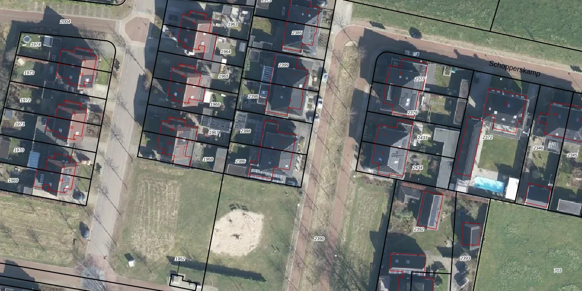 Gebruik de zoekbalk of klik op een perceel voor informatie over de adressen binnen dit perceel.