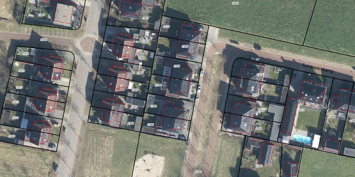 Gebruik de zoekbalk of klik op een perceel voor informatie over de adressen binnen dit perceel.