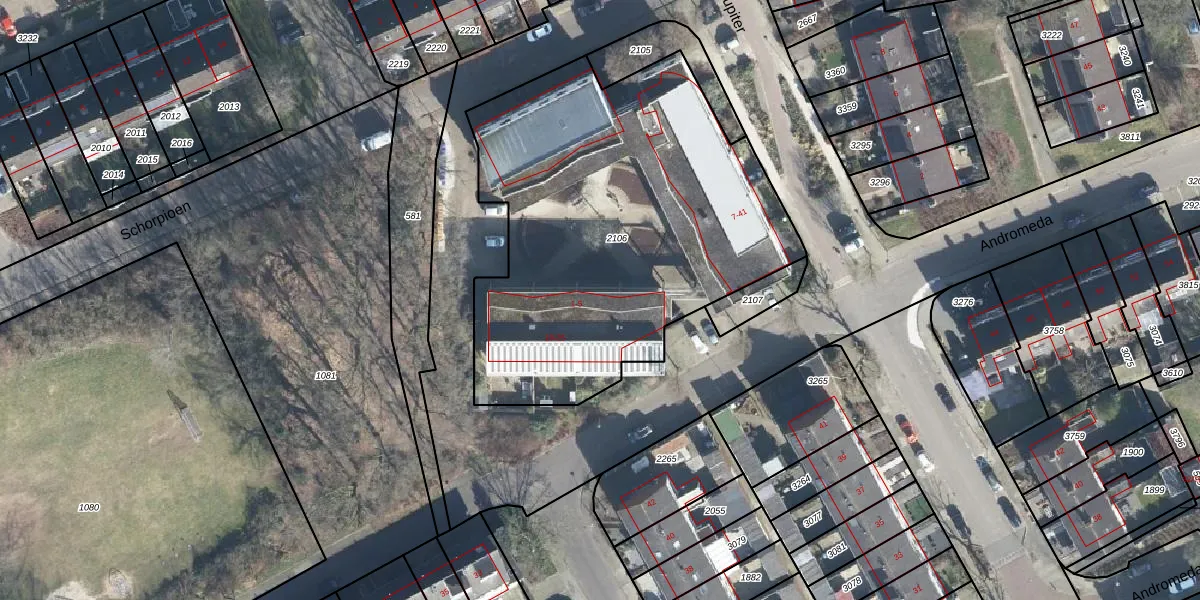 Het perceel waarop Schorpioen 5 staat heeft een oppervlakte van 2192 m². Dit is een zeer groot perceel. De perceeloppervlakte wordt geregistreerd door het Kadaster. Gedetailleerde informatie over de maten van dit perceel kunt u vinden in het rapport Kadastrale kaart met maatvoering van Schorpioen 5.