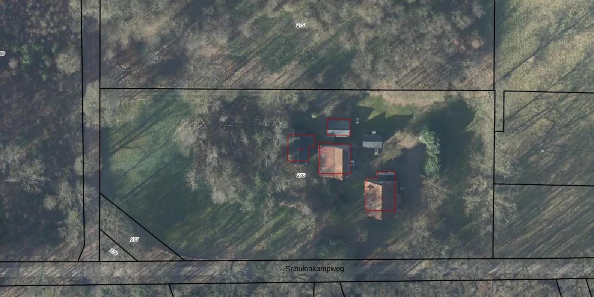 Het perceel waarop Schulenkampweg 2-A staat heeft een oppervlakte van 7280 m². Dit is een zeer groot perceel. De perceeloppervlakte wordt geregistreerd door het Kadaster. Gedetailleerde informatie over de maten van dit perceel kunt u vinden in het rapport Kadastrale kaart met maatvoering van Schulenkampweg 2-A.