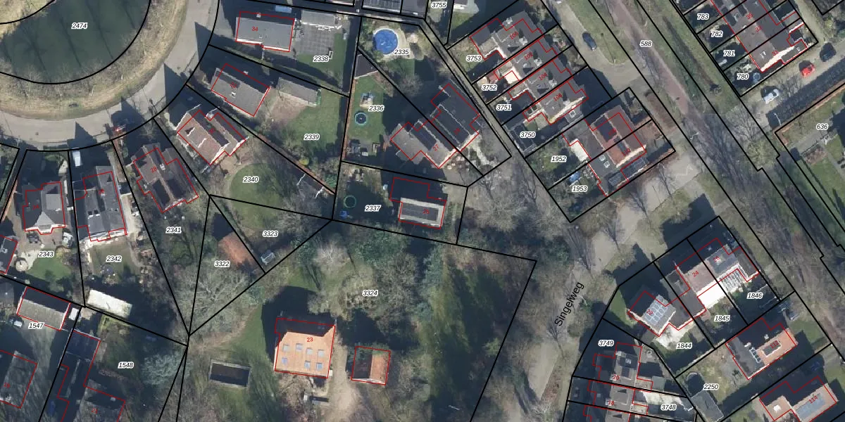 Het perceel waarop Singelweg 25 staat heeft een oppervlakte van 426 m². Dit is een groot perceel. De perceeloppervlakte wordt geregistreerd door het Kadaster. Gedetailleerde informatie over de maten van dit perceel kunt u vinden in het rapport Kadastrale kaart met maatvoering van Singelweg 25.