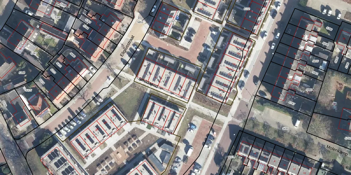 Het perceel waarop Smildapad 7 staat heeft een oppervlakte van 693 m². Dit is een groot perceel. De perceeloppervlakte wordt geregistreerd door het Kadaster. Gedetailleerde informatie over de maten van dit perceel kunt u vinden in het rapport Kadastrale kaart met maatvoering van Smildapad 7.