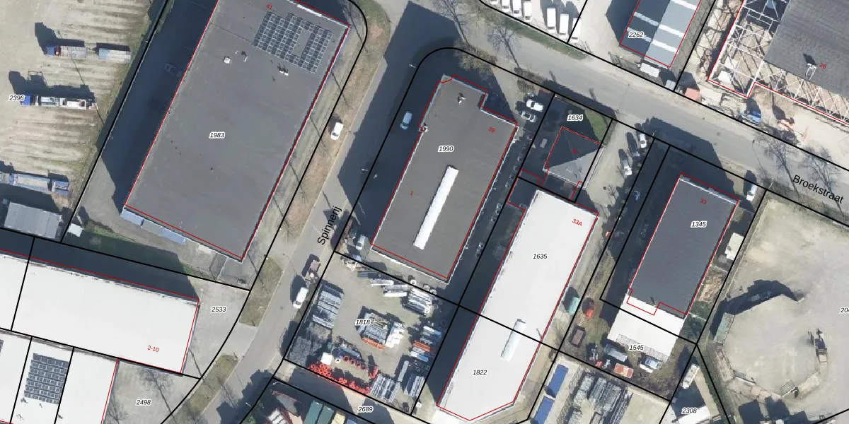 Het perceel waarop Spinnerij 1 staat heeft een oppervlakte van 1750 m². Dit is een zeer groot perceel. De perceeloppervlakte wordt geregistreerd door het Kadaster. Gedetailleerde informatie over de maten van dit perceel kunt u vinden in het rapport Kadastrale kaart met maatvoering van Spinnerij 1.