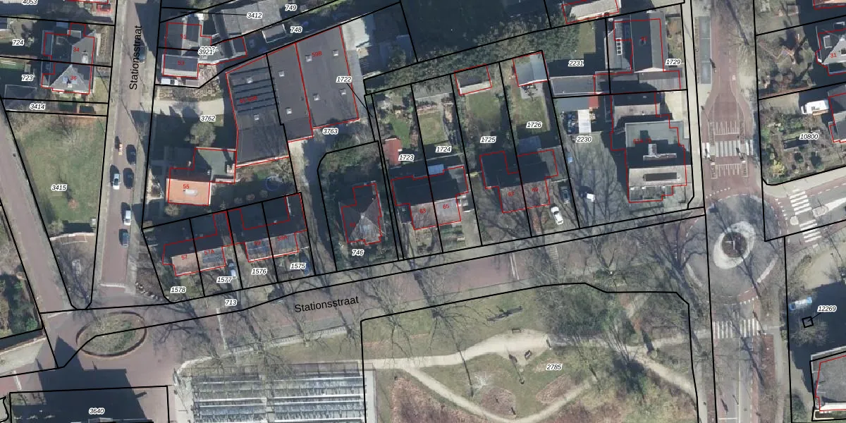 Het perceel waarop Stationsstraat 63 staat heeft een oppervlakte van 380 m². Dit is een groot perceel. De perceeloppervlakte wordt geregistreerd door het Kadaster. Gedetailleerde informatie over de maten van dit perceel kunt u vinden in het rapport Kadastrale kaart met maatvoering van Stationsstraat 63.