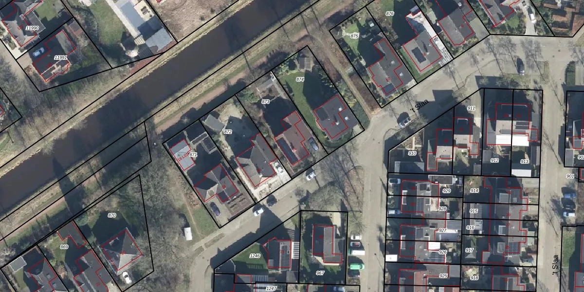 Het perceel waarop 't Slaa 14 staat heeft een oppervlakte van 525 m². Dit is een groot perceel. De perceeloppervlakte wordt geregistreerd door het Kadaster. Gedetailleerde informatie over de maten van dit perceel kunt u vinden in het rapport Kadastrale kaart met maatvoering van 't Slaa 14.