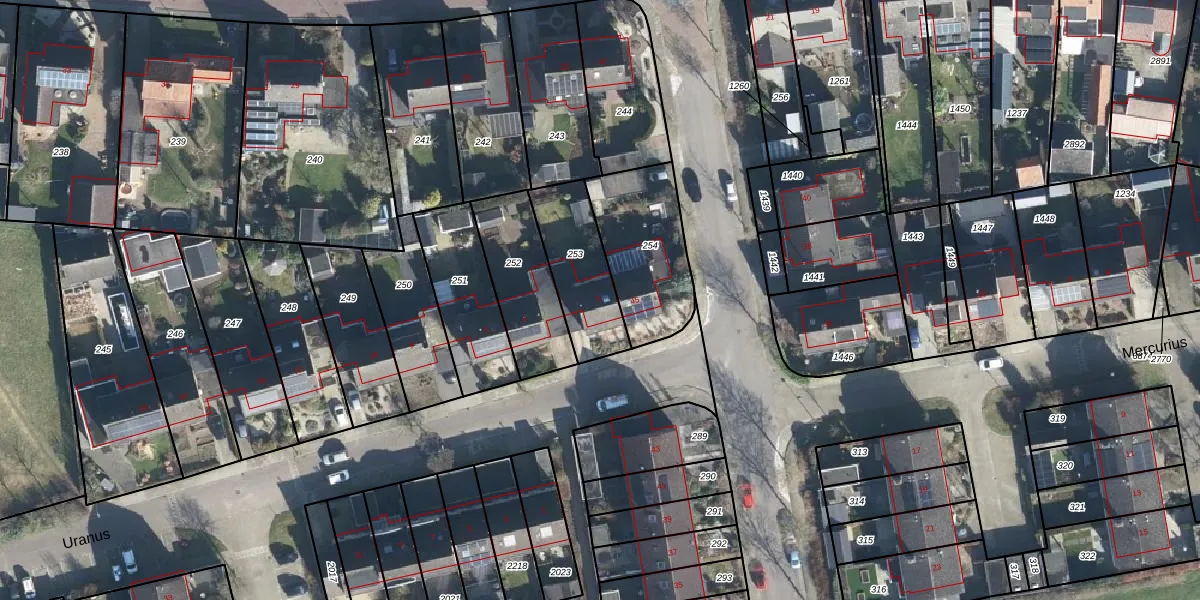 Het perceel waarop Uranus 2 staat heeft een oppervlakte van 285 m². Dit is een middelgroot perceel. De perceeloppervlakte wordt geregistreerd door het Kadaster. Gedetailleerde informatie over de maten van dit perceel kunt u vinden in het rapport Kadastrale kaart met maatvoering van Uranus 2.
